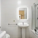 Lägenheten har rum med te/kaffebryggare, sitthörna och teve samt ett kök. Lägenheten består av 1 sovrum och 1 badrum med separat toalett och badkar.